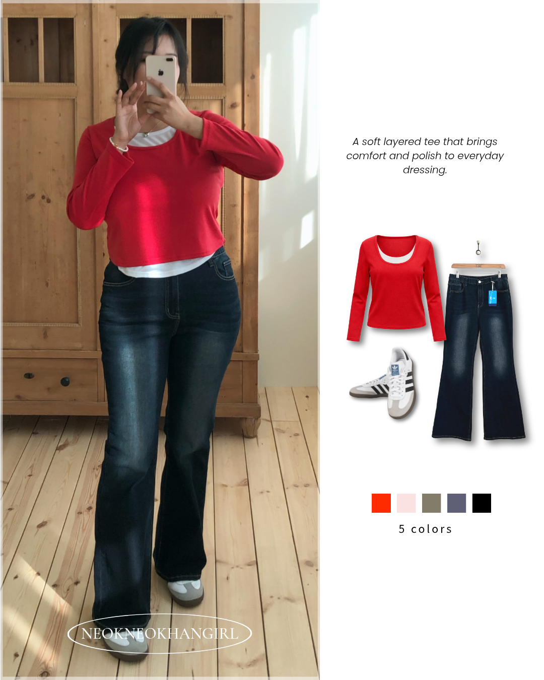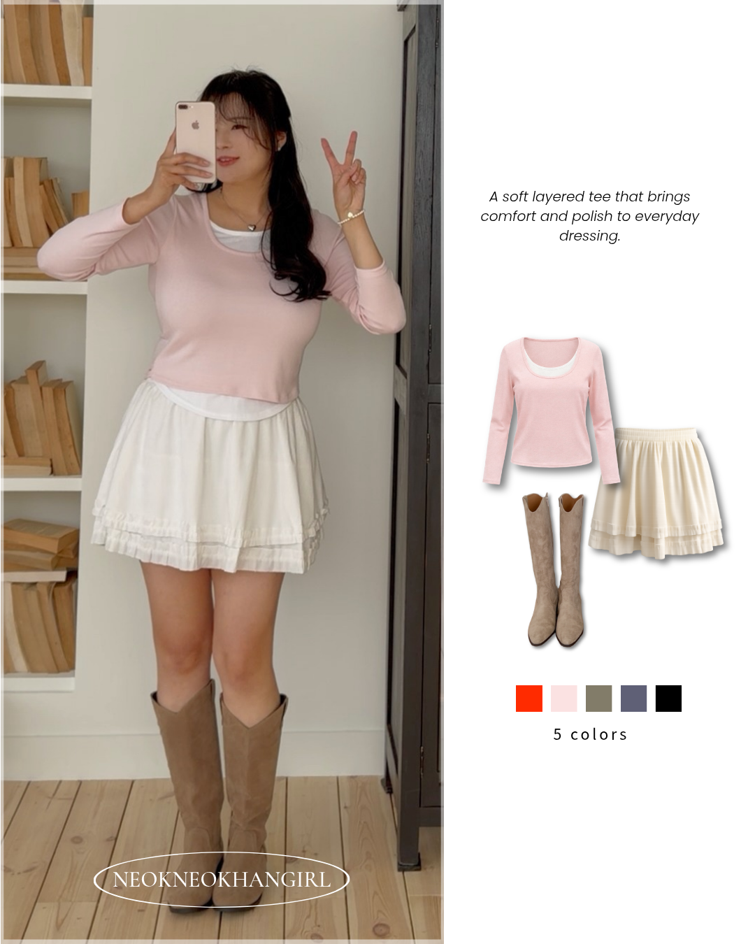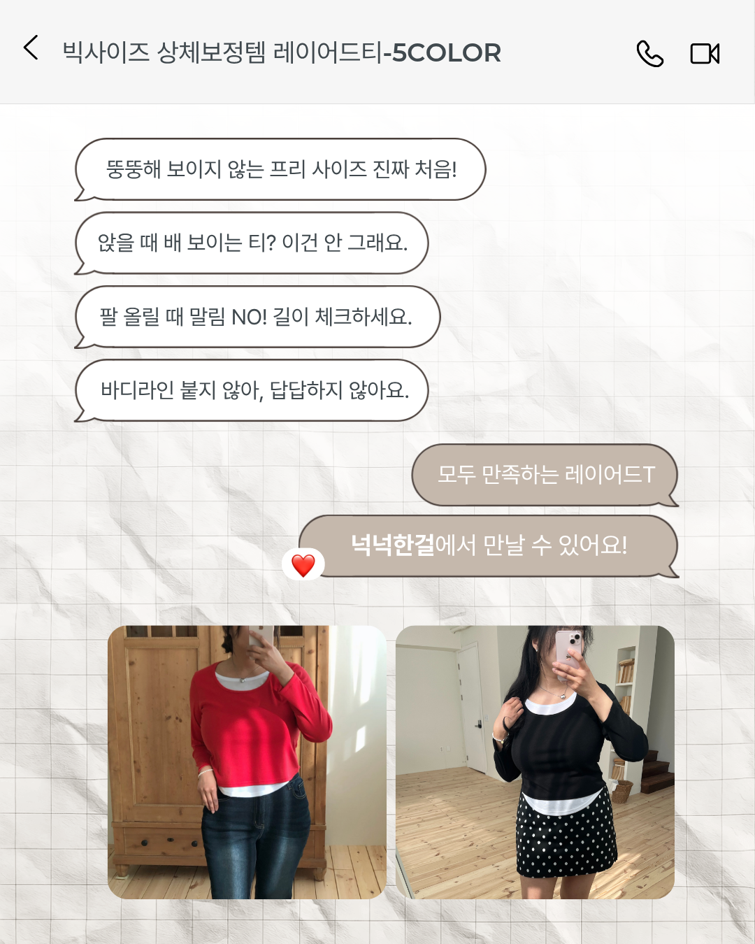 빅사이즈 상체보정템 레이어드티-5COLOR (옆셔링없는ver)