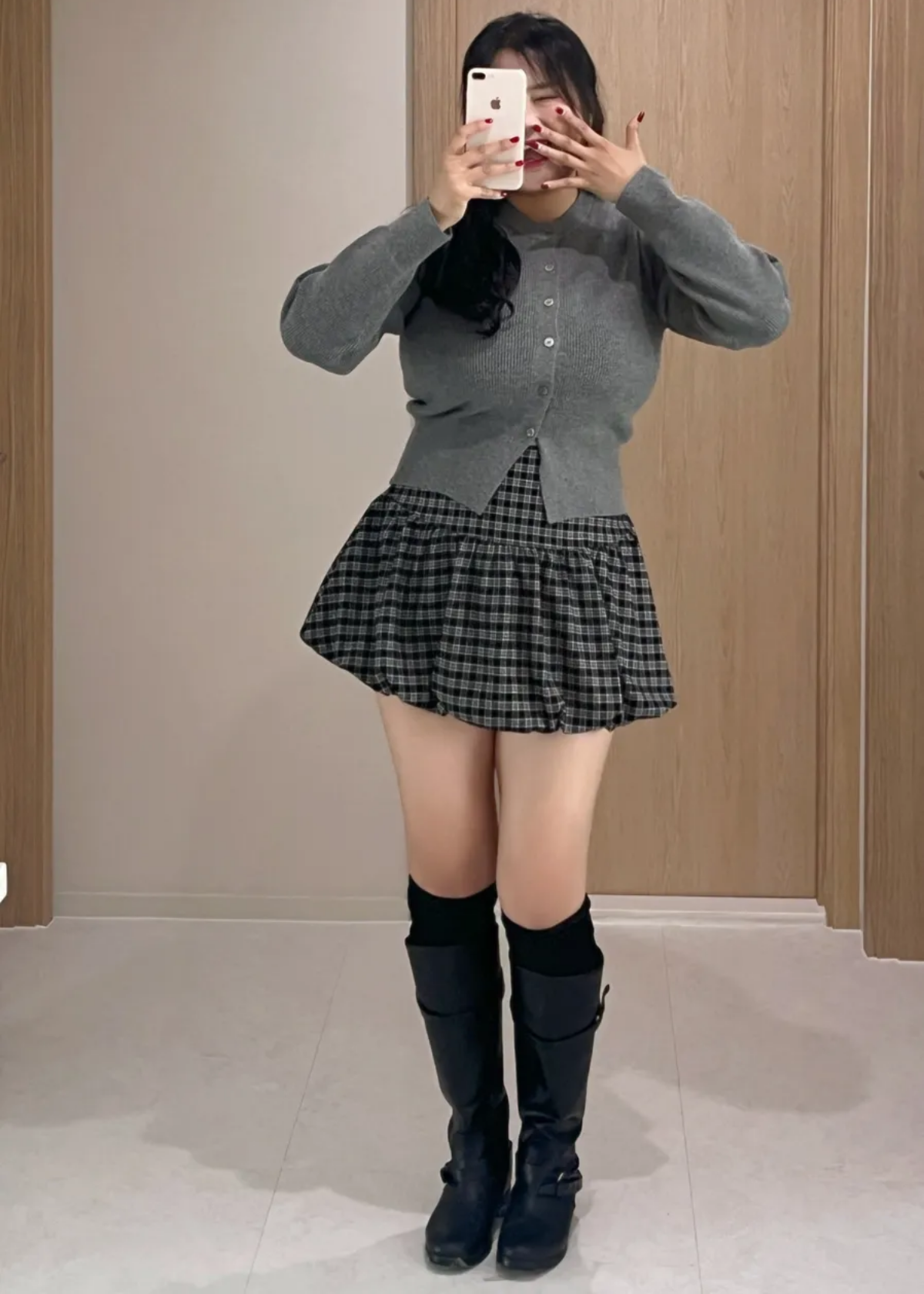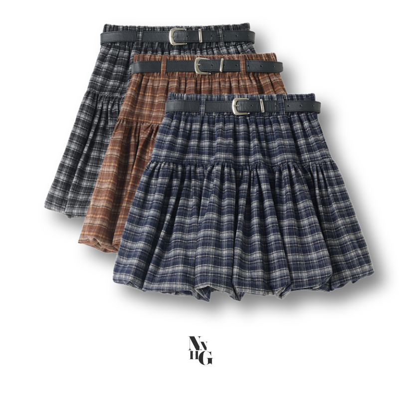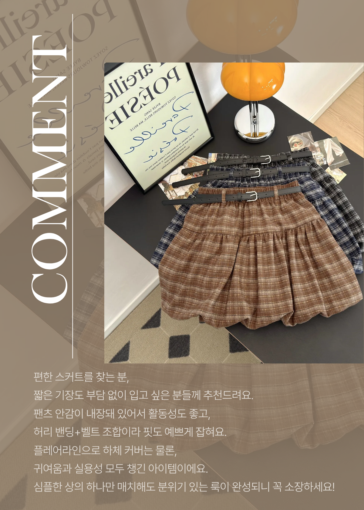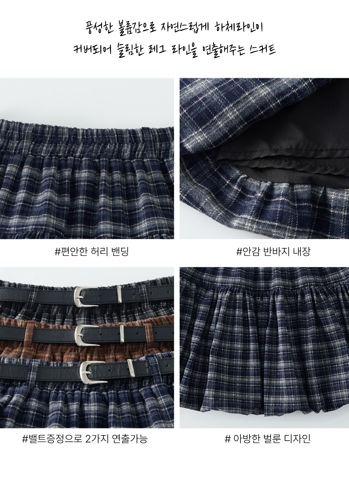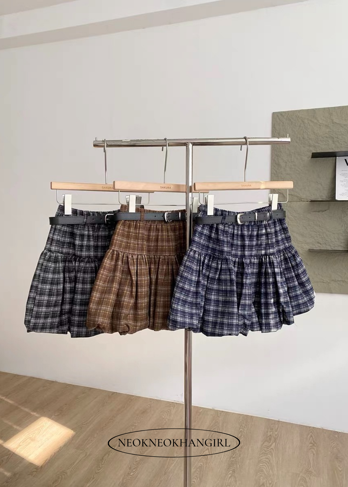 [밴딩형]벌룬 펌킨체크 미니스커트-3color(52614025)