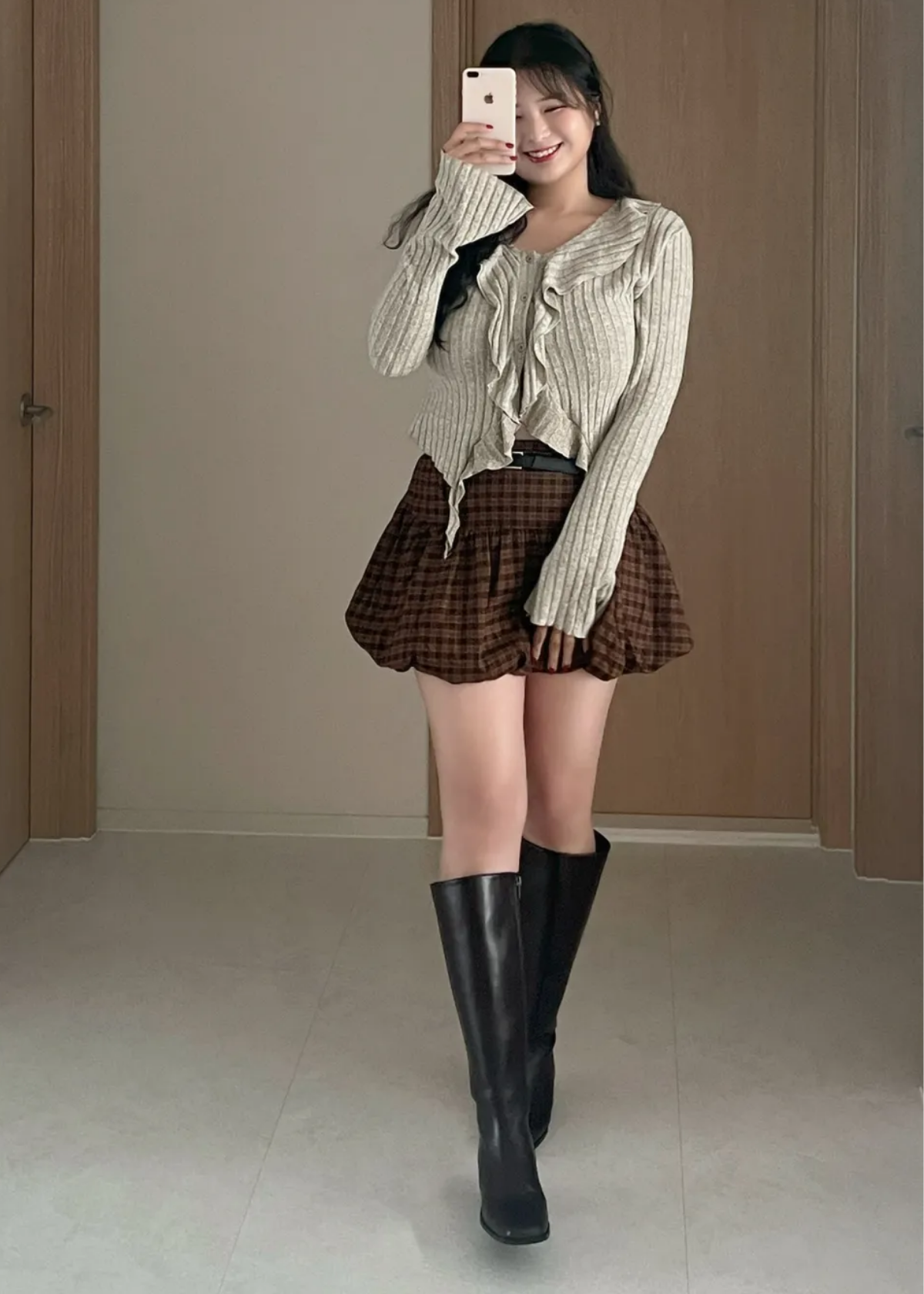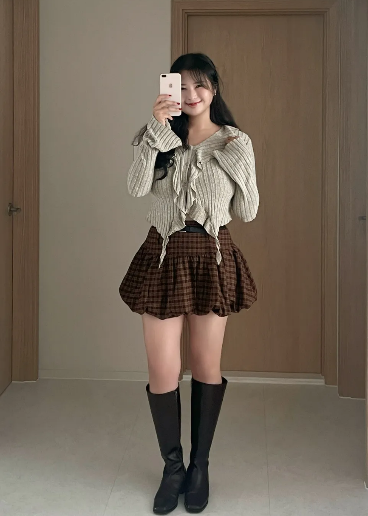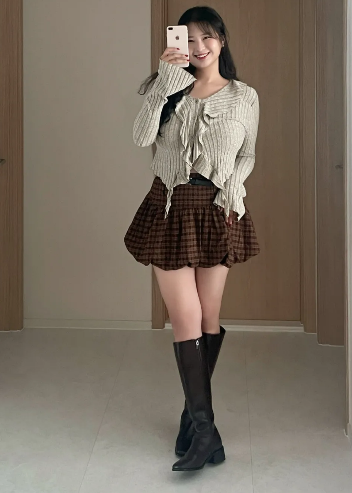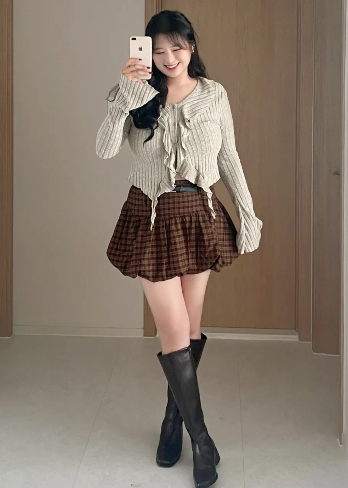 [밴딩형]벌룬 펌킨체크 미니스커트-3color(52614025)