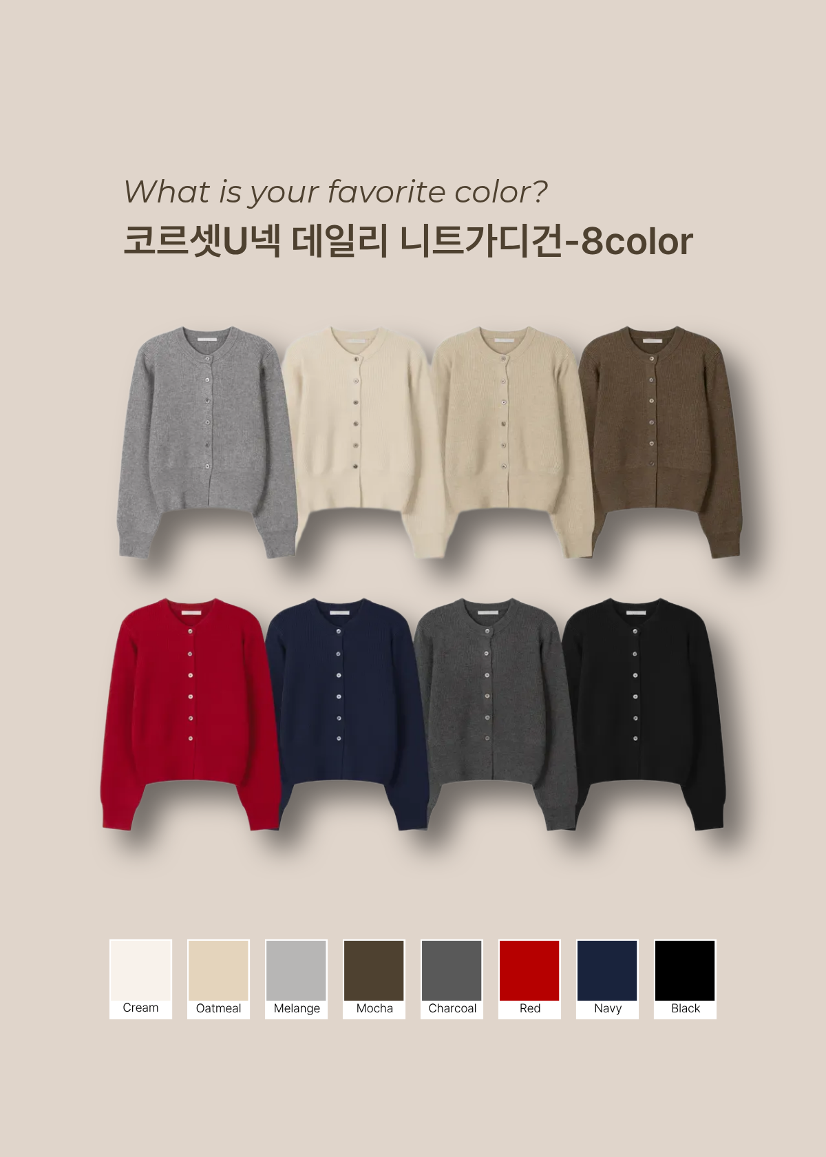 코르셋U넥 데일리 니트가디건-8color