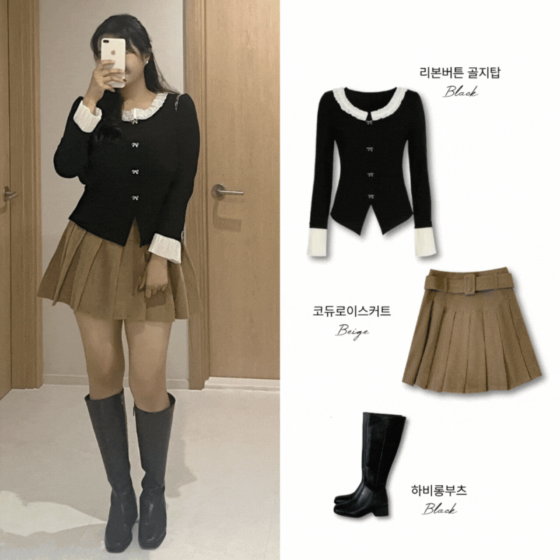 - 슬림핏 리본버튼골지탑-2COLOR (52124286)