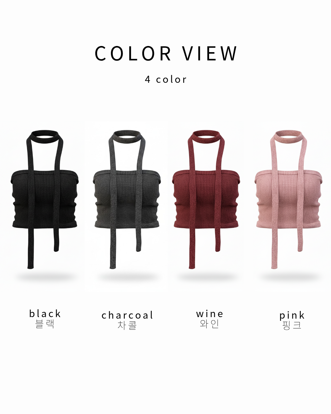 - 빅사이즈 뷔스티에 레이어드 니트탑 타이 세트 -4color