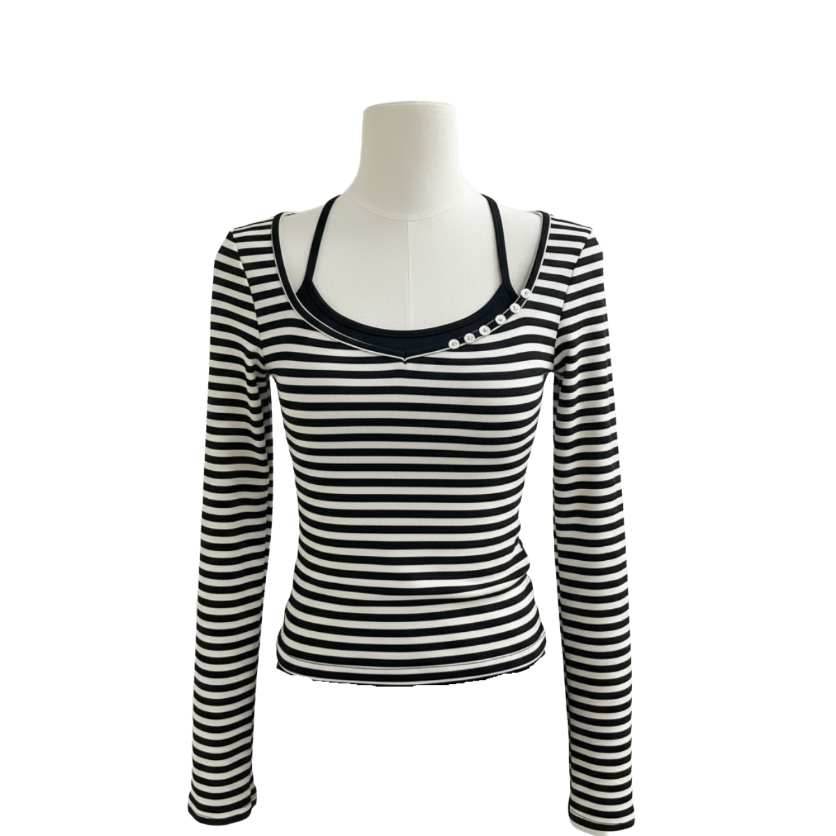 - [교환환불불가상품]홀터넥 스트라이프 레이어드티(53249246)