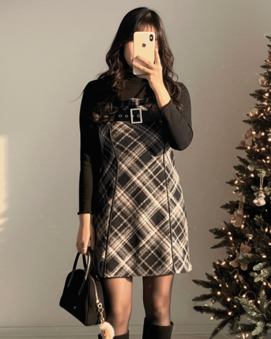 - [출근룩/편한] 트위드 골지 가죽벨트원피스(53563238)