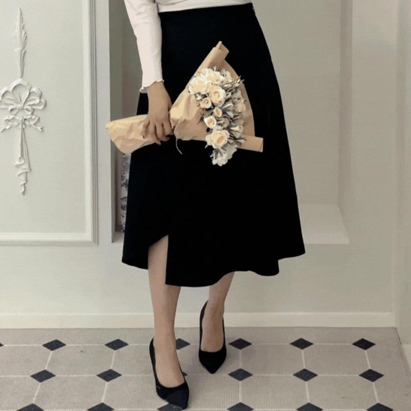 - 뒷밴딩 하객룩롱스커트 언발랩스커트 (49159489)