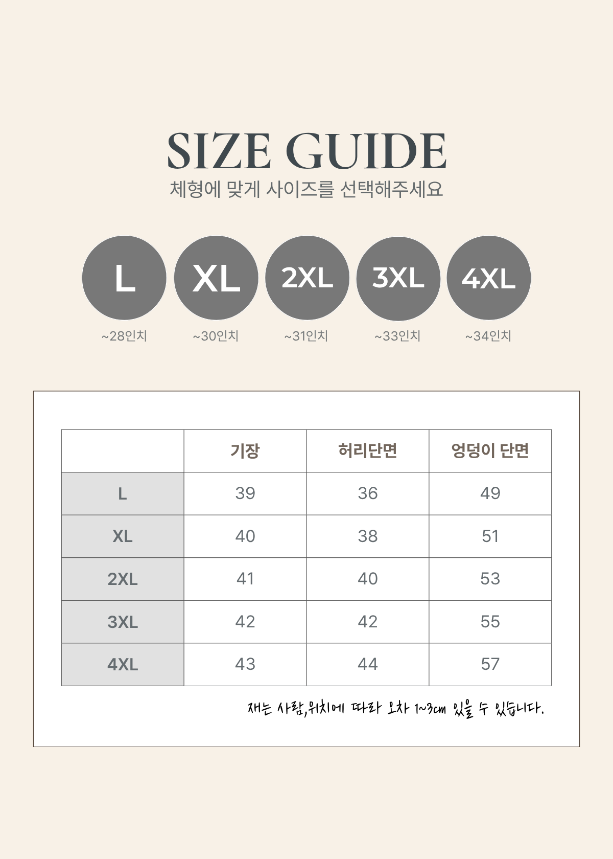 ※ 상품사이즈 치수는 재는 방법과 위치에 따라 1~3cm 오차가 있을 수 있습니다.