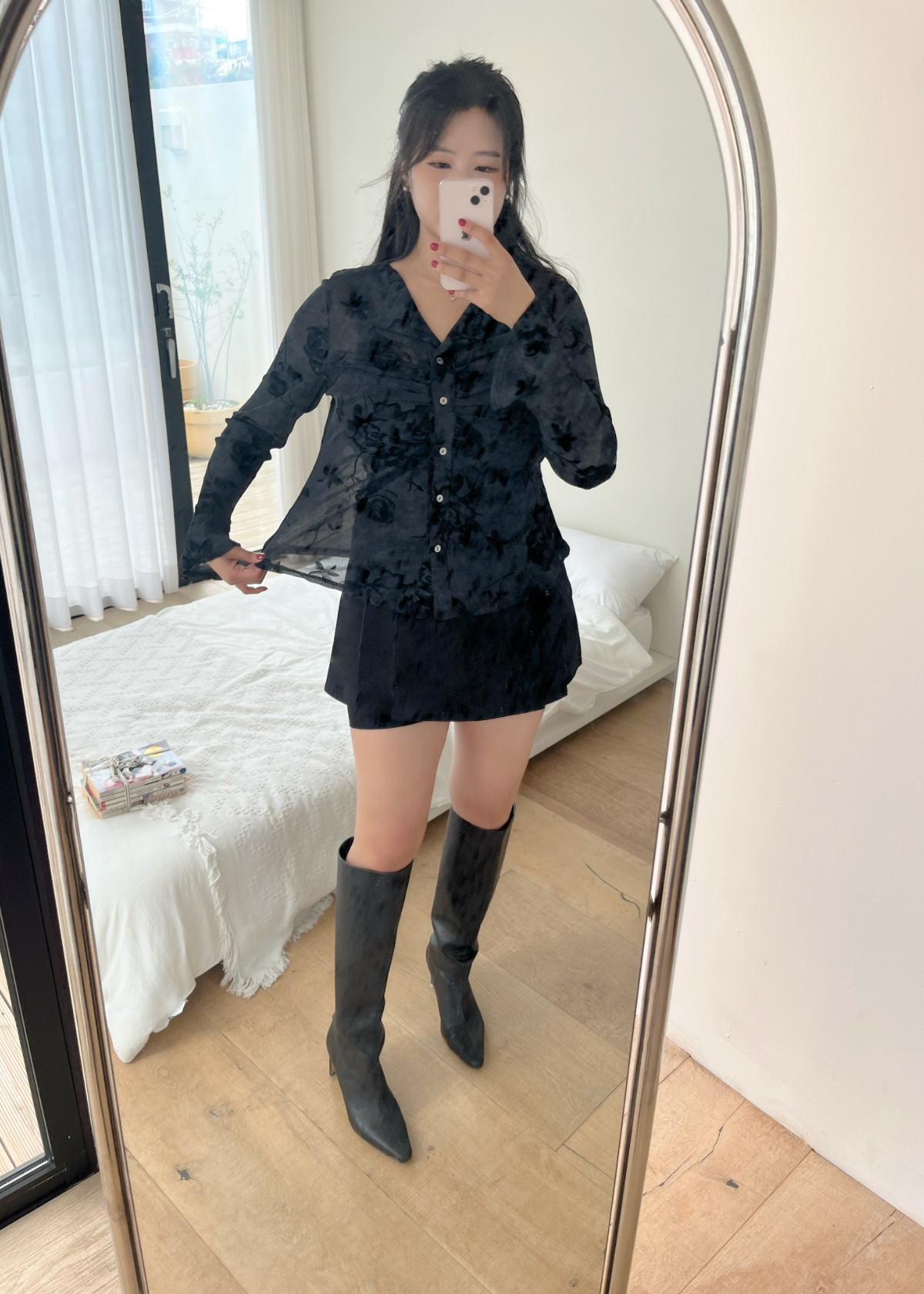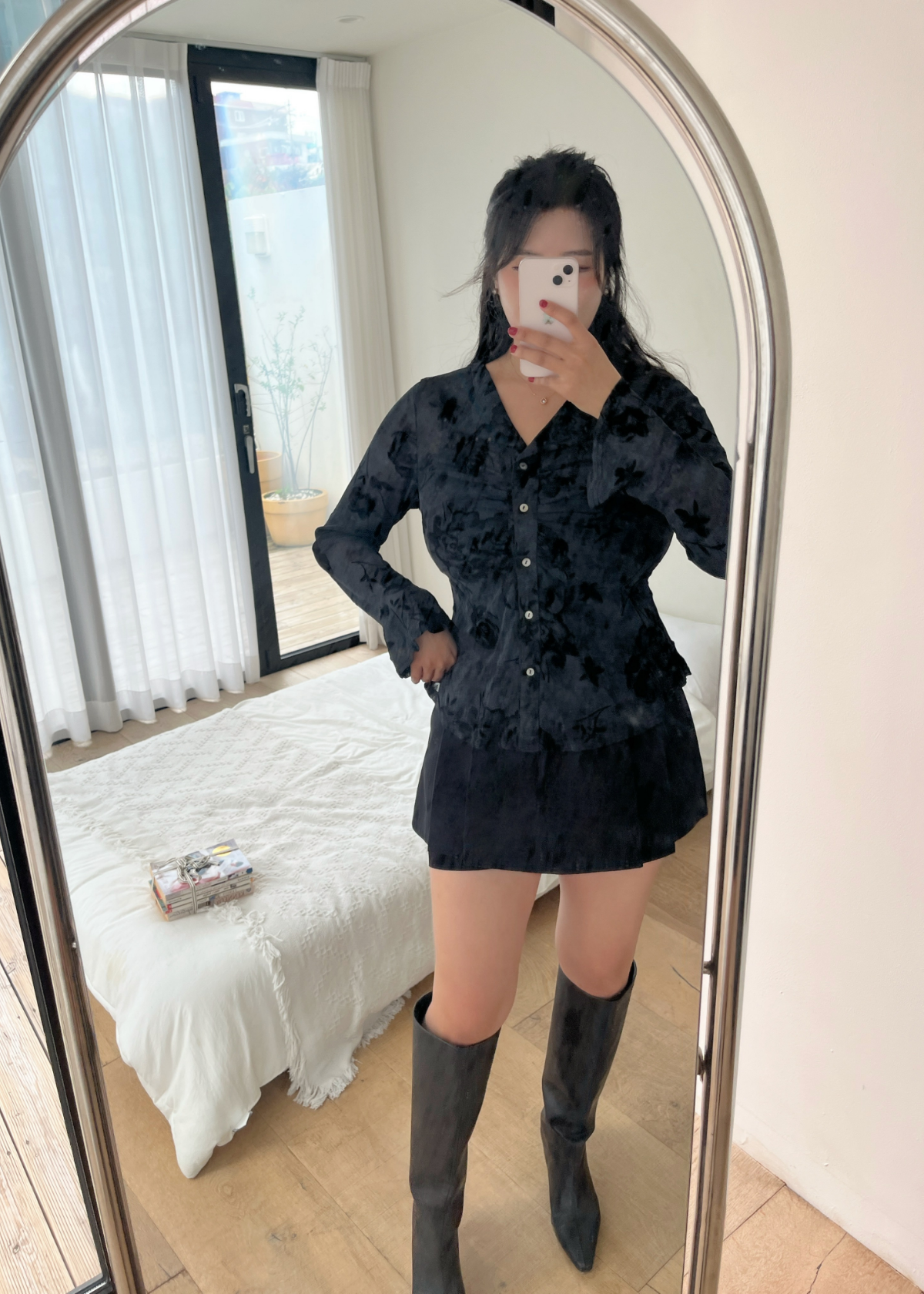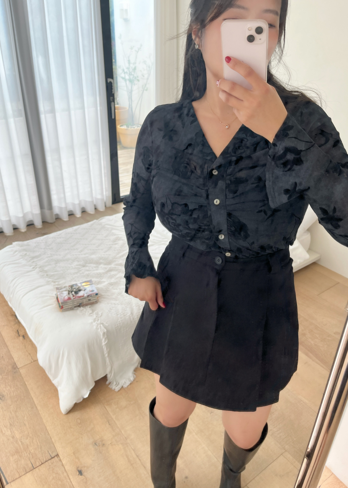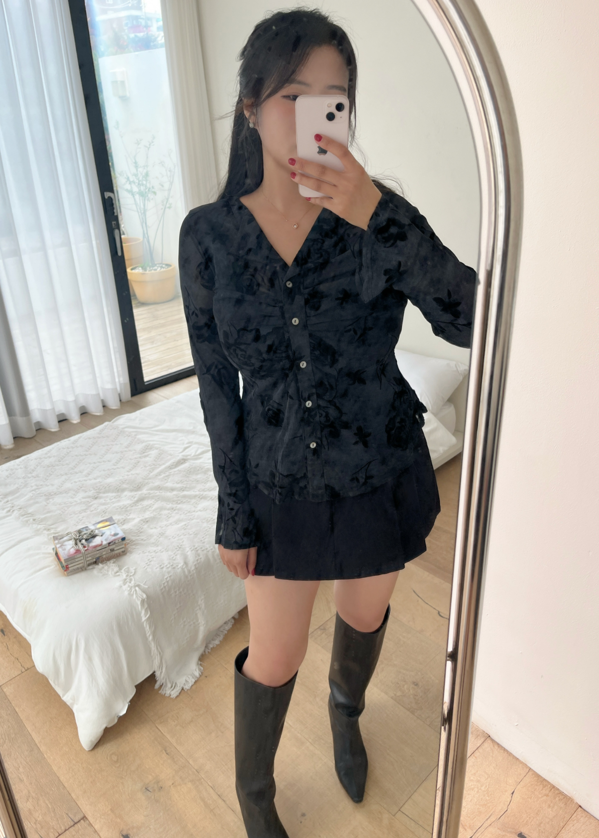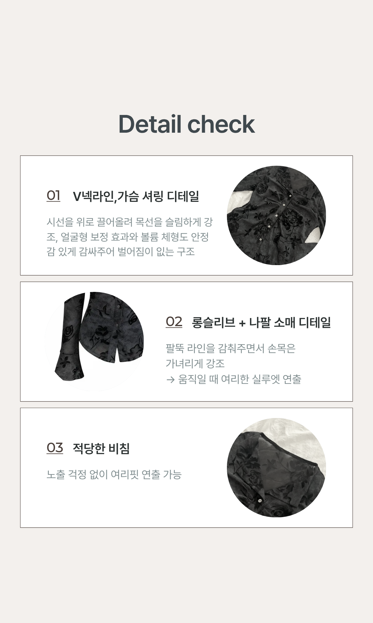 블랙 베이스에 은은한 벨벳 플라워가 들어가서 부해 보이지 않으면서도 고급스러움 강조