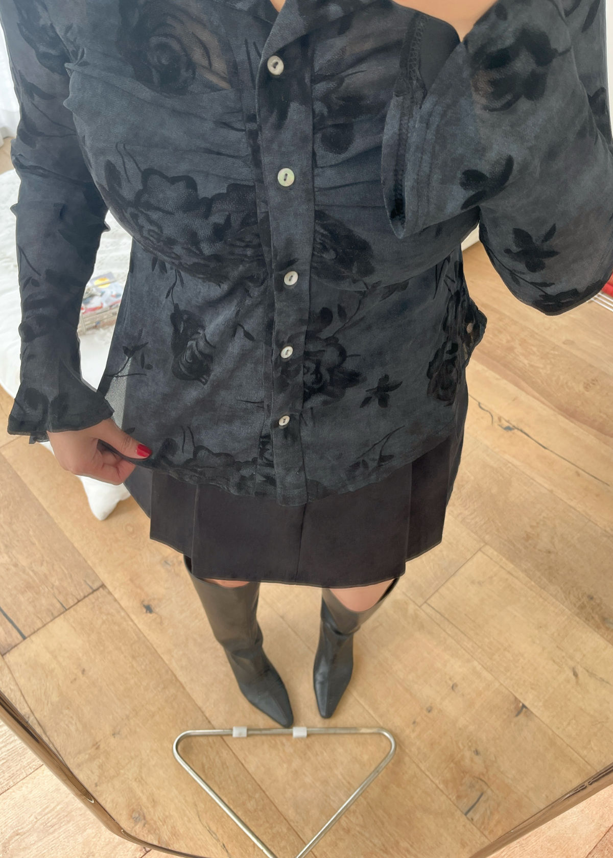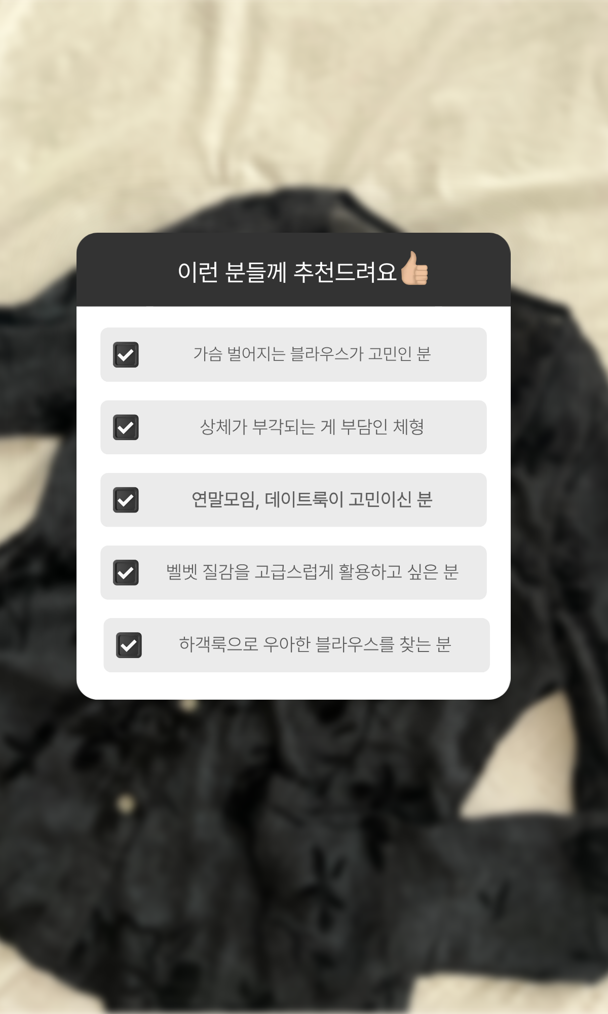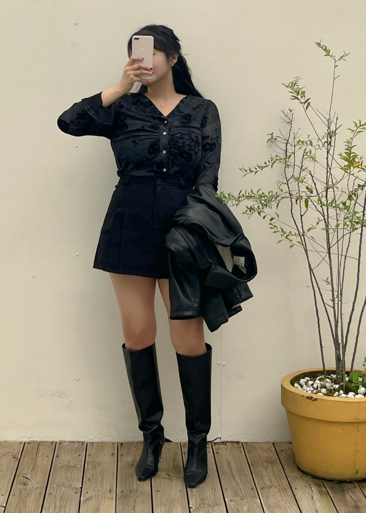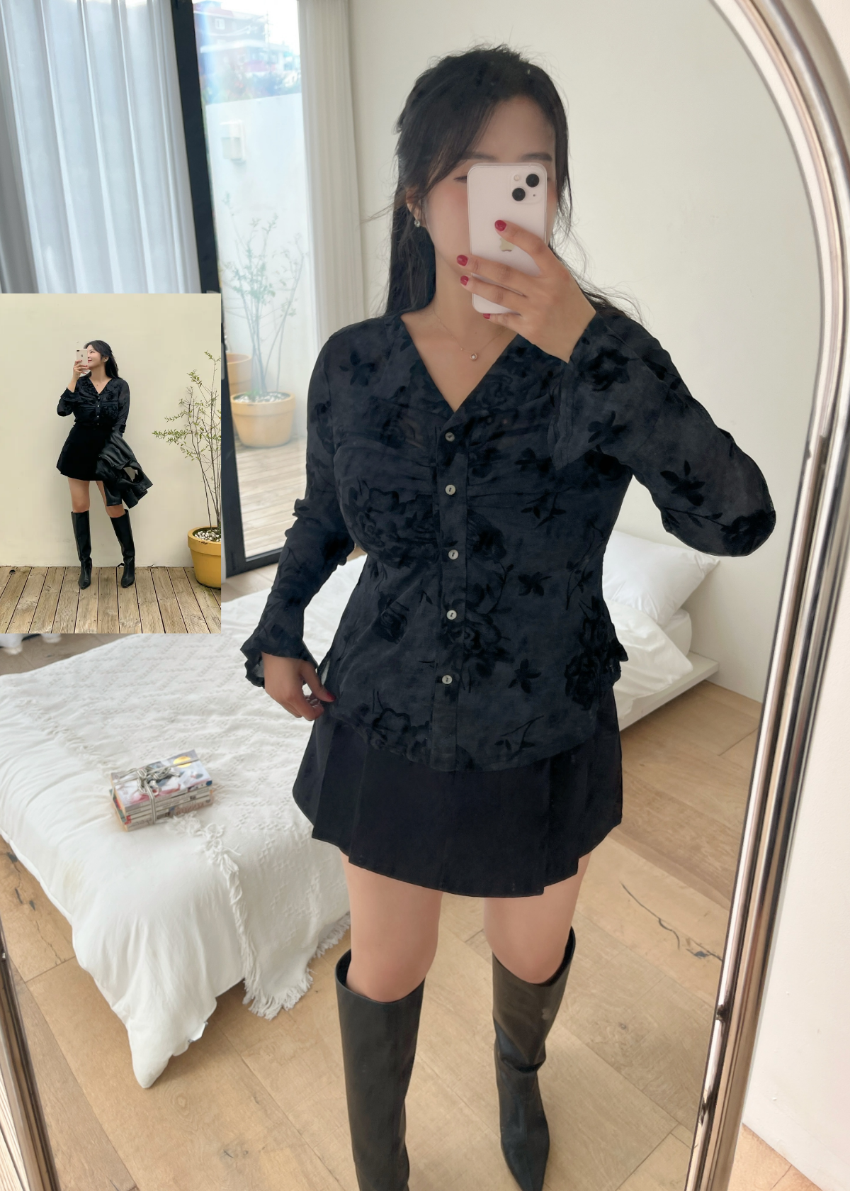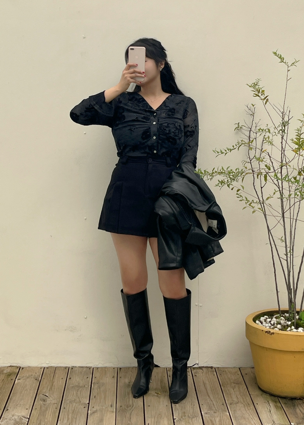 블랙 베이스에 은은한 벨벳 플라워가 들어가서 부해 보이지 않으면서도 고급스러움 강조