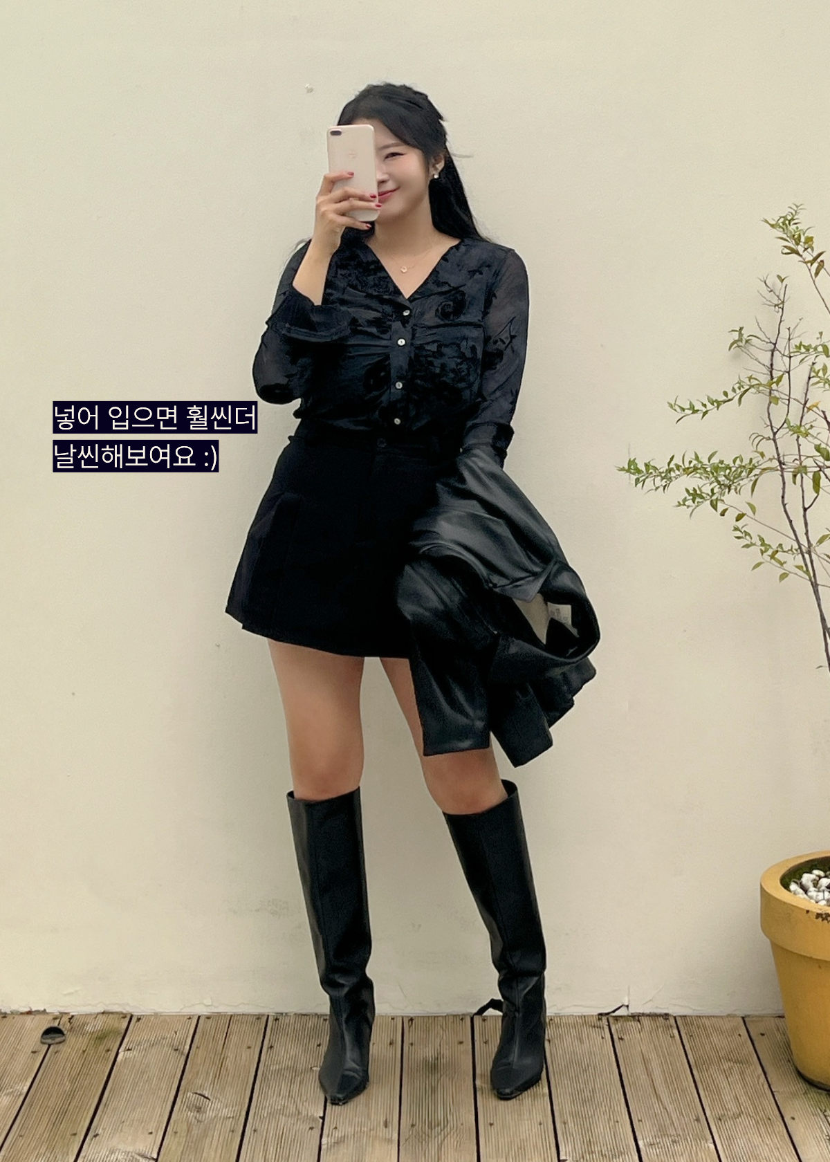 소재: 벨벳 터치감 혼방 + 반비침 레이스 믹스