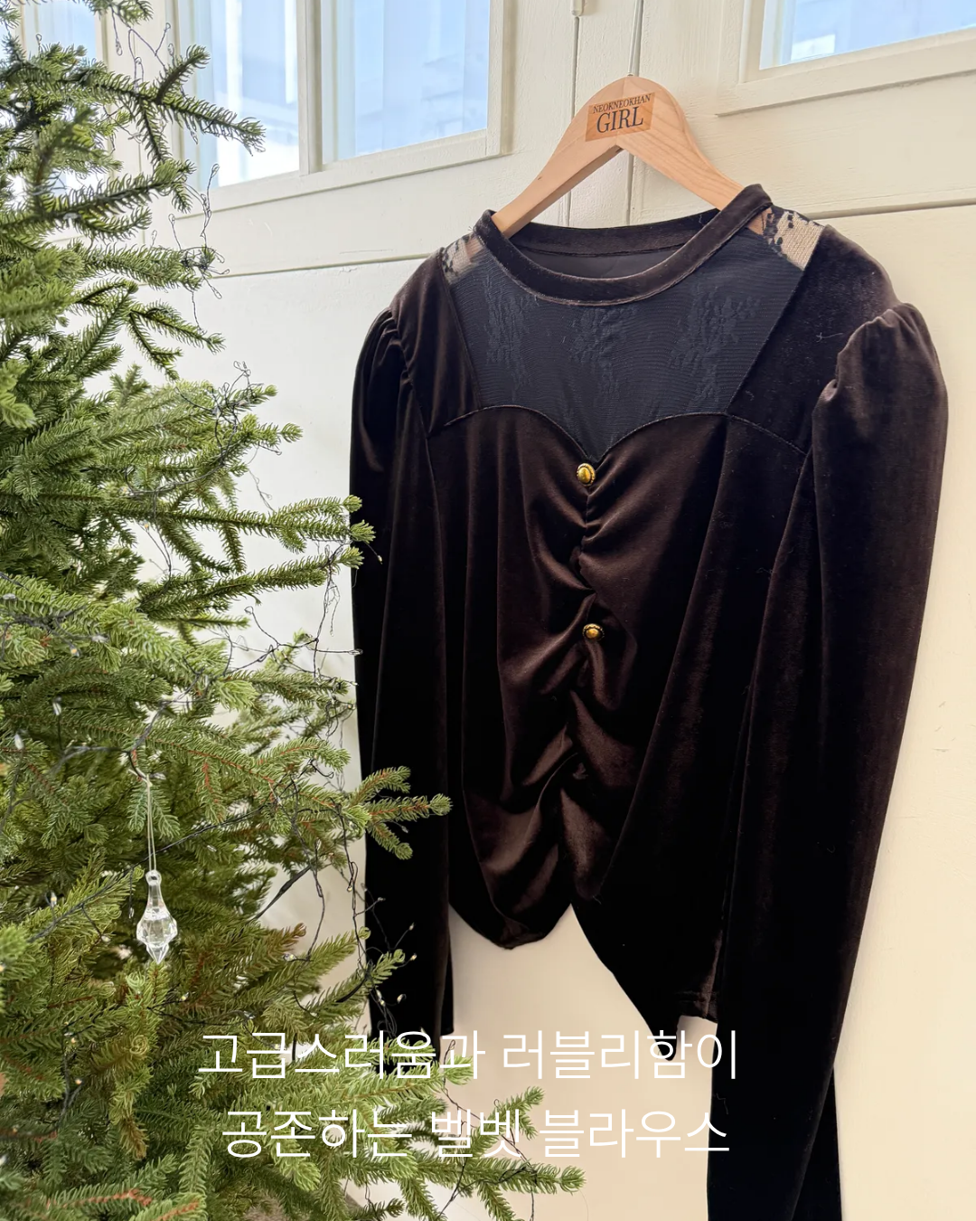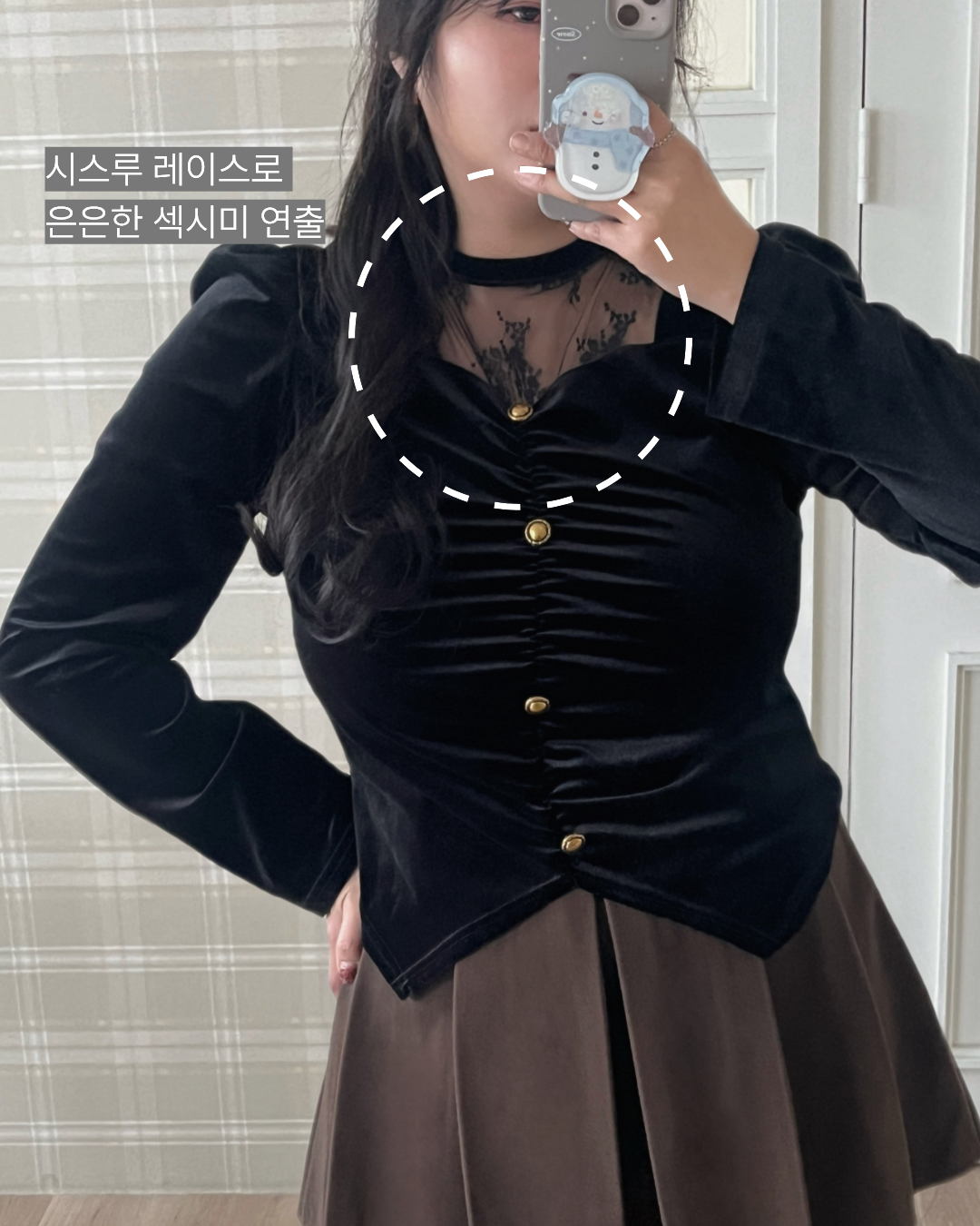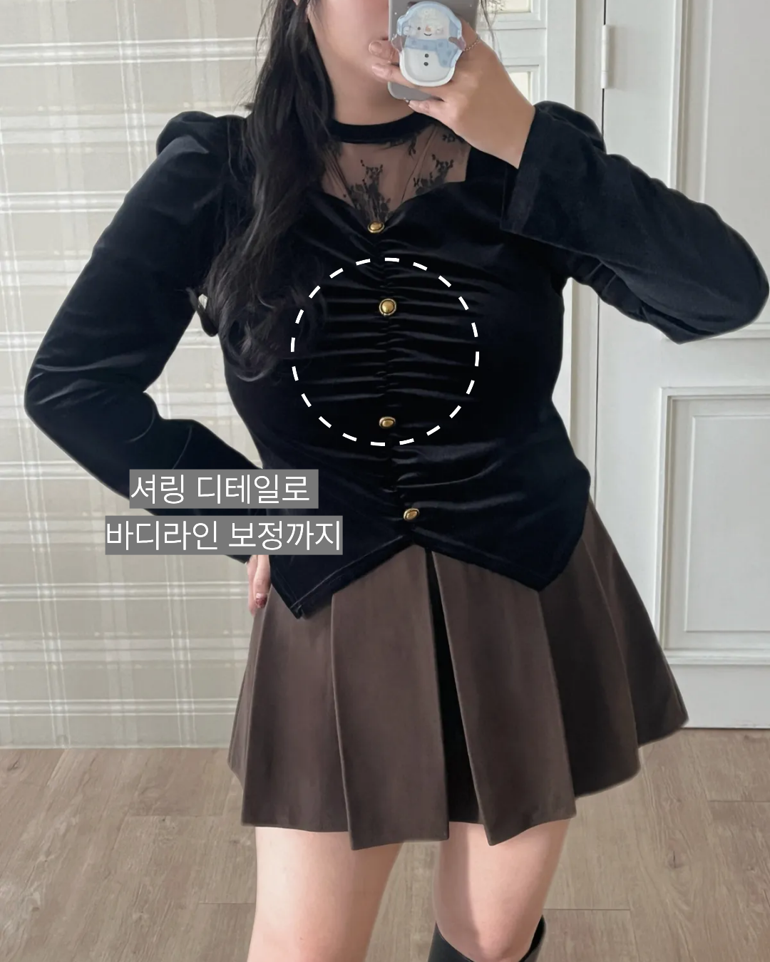 [연말룩/시스루] 앞셔링 벨벳 시스루 빅사이즈 블라우스 -2COLOR(53713641)