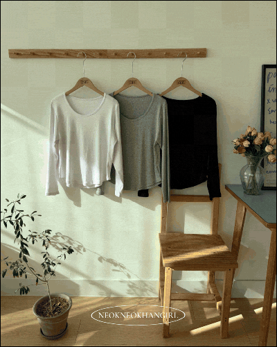 빅사이즈 스판쫀쫀 짱편안 기본 U넥 긴팔 굴림티 -6COLOR