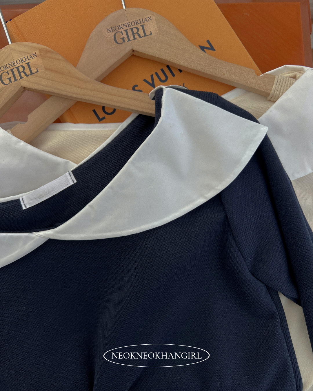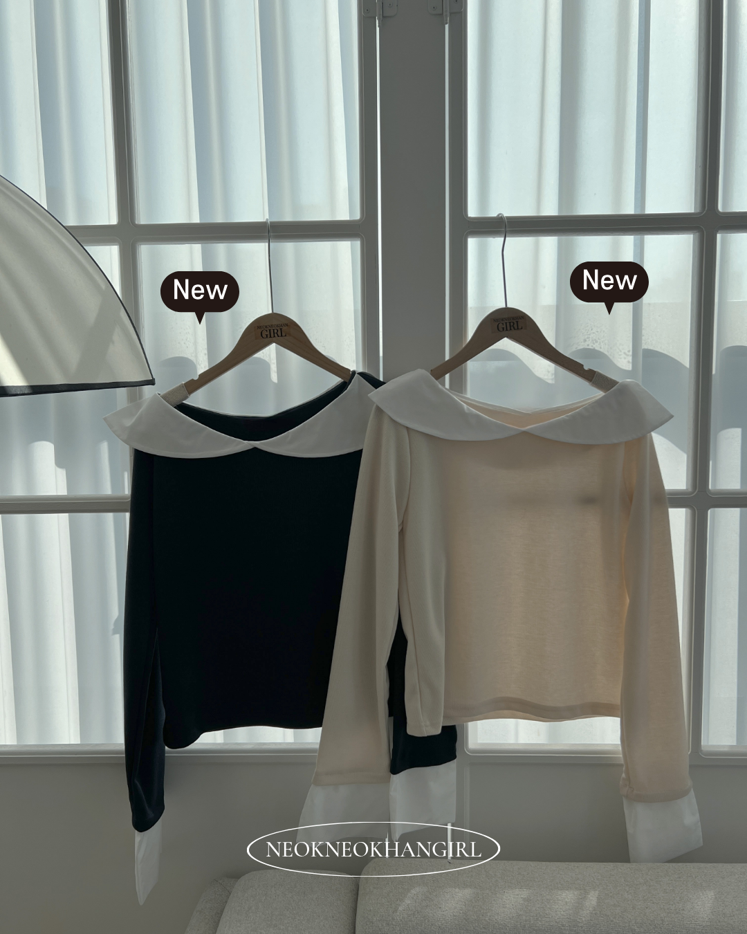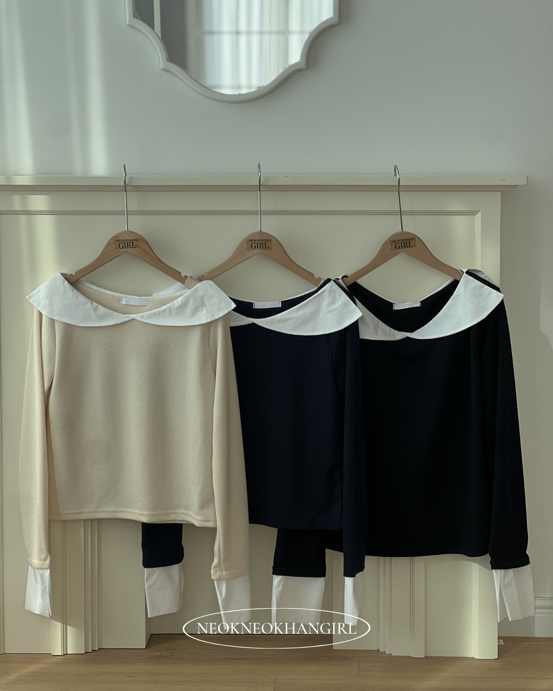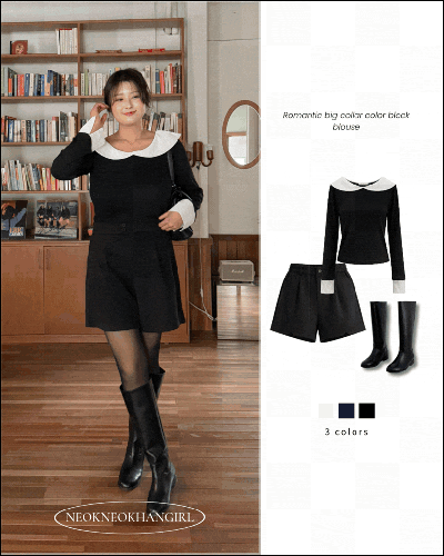 [컬러추가/사이즈추가]로맨틱 빅카라 배색 골지 블라우스티-3COLOR