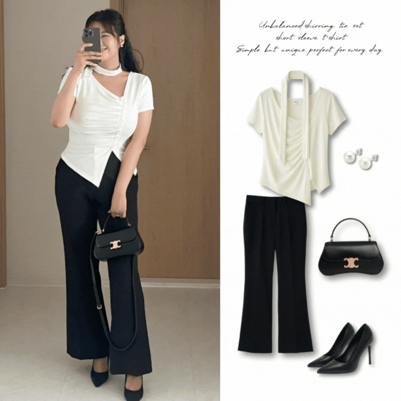 언밸런스 셔링 타이 세트 반팔 티셔츠