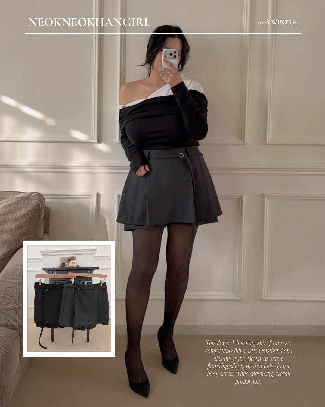 데일리 허벅지말라핏 A라인 플리츠 치마바지 -2COLOR